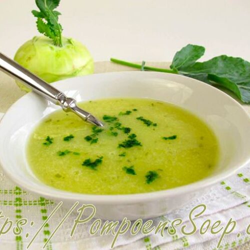 - Warm nog een op indien nodig (niet meer koken) en serveer je koolrabisoep onmiddellijk.